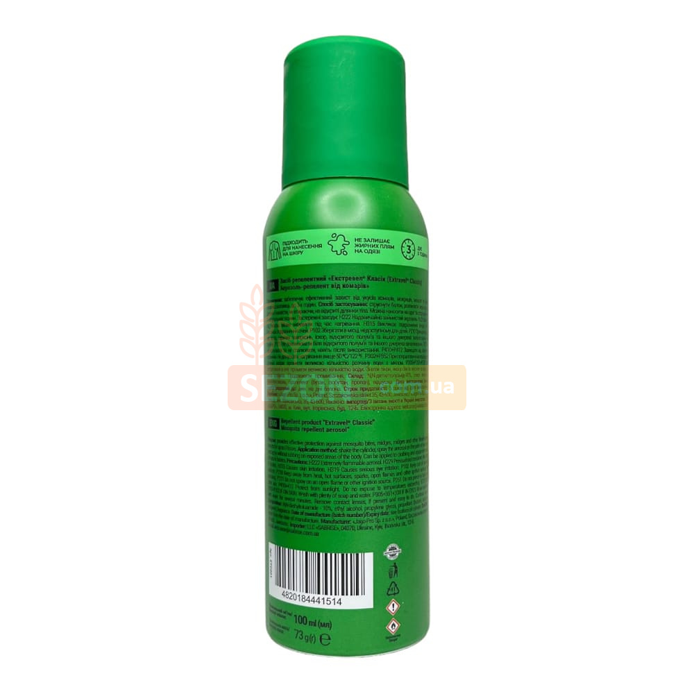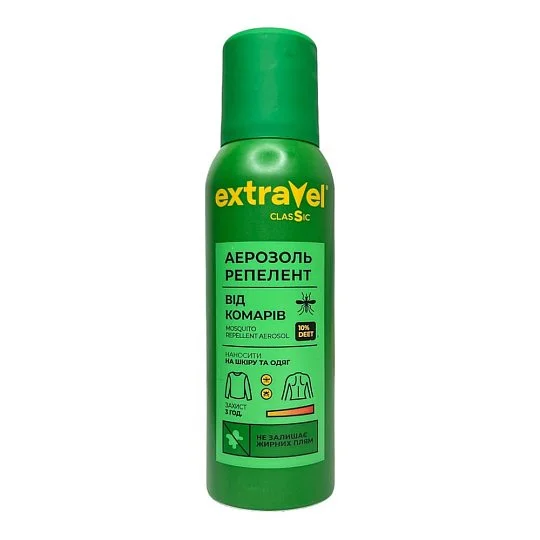 Планируете выезд на дачу, рыбалку или просто прогулку в лесу? Не позволяйте комарам и другим кровососущим насекомым испортить ваше время на свежем воздухе. Аэрозоль-репеллент Extravel Classic — надёжный помощник в борьбе с мошками, мокрецами и, конечно, комарами. Компактный баллон удобно взять с собой, а действие средства сохраняется до трёх часов.