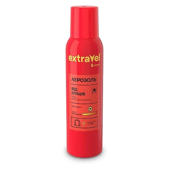 Extravel Superior — это мощное и удобное средство в формате аэрозоля, предназначенное для защиты от клещей при нахождении на природе. Репеллент специально разработан для нанесения на одежду и обеспечивает длительный эффект отпугивания — до 5 суток после обработки.
