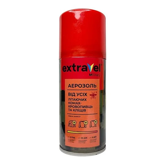 Extravel Military — это эффективное средство, созданное для защиты от летающих насекомых и клещей даже в самых сложных условиях. Оно подойдёт тем, кто часто бывает на природе: в лесу, у воды, на даче или в путешествии.