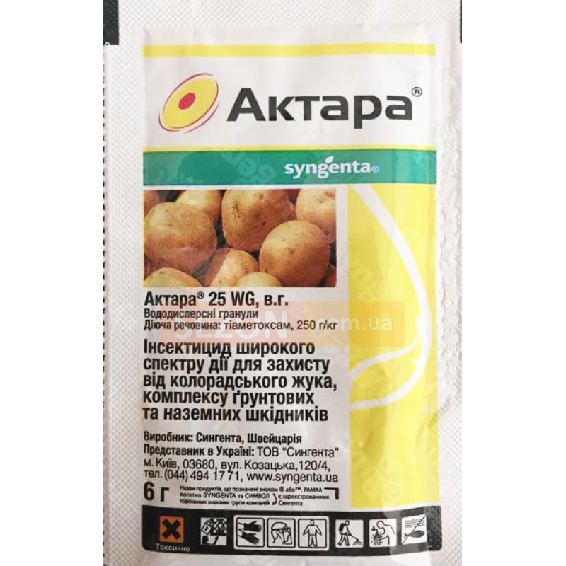 Актара – системный инсектицид широкого спектра действия, применяемый для борьбы с вредителями овощных, плодово-ягодных и зерновых культур. Действующее вещество – тиаметоксам, который быстро поглощается растением и распространяется по ксилеме, уничтожая вредителей на всех стадиях их развития.