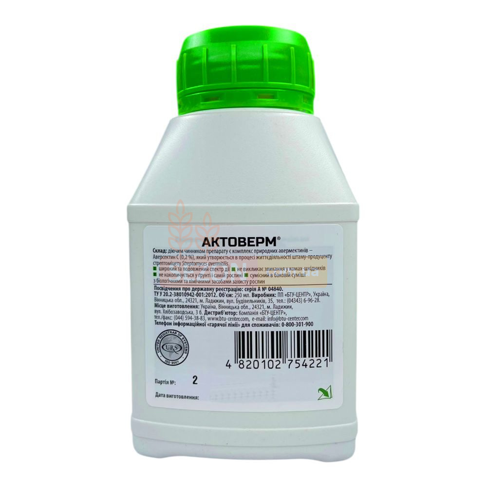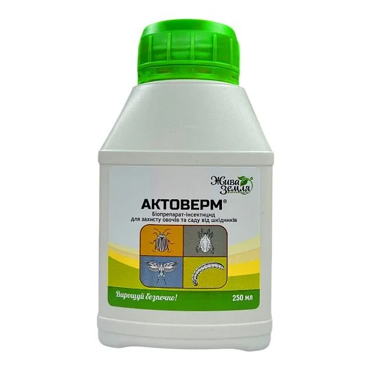 Актоверм — это современное биологическое средство для защиты растений от широкого спектра насекомых-вредителей и их личинок. Препарат эффективен против колорадского жука, клещей, трипсов, белокрылки, плодожорки, щитовки и других вредителей, поражающих овощные, плодовые, цветочные, ягодные и декоративные культуры, а также комнатные и хвойные растения.
