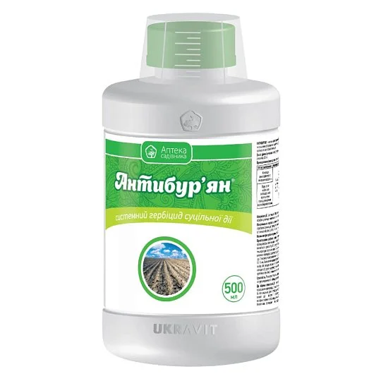 Антибурьян — это гербицид системного действия, предназначенный для уничтожения более 300 видов однолетних и многолетних сорняков, включая карантинные и кустарниковую растительность. Применяется на парах, послеуборочных и несельскохозяйственных землях, виноградниках, в садах и при подготовке лесных участков под посадку.