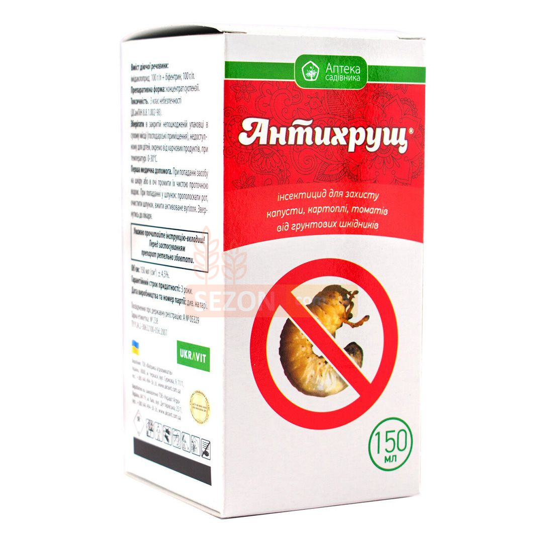 Антихрущ — это высокоэффективный препарат, сочетающий контактное и системное действие для комплексной защиты различных культур от почвообитающих и наземных вредителей. Используется как для обработки почвы перед посадкой, так и для предпосадочной обработки рассады и саджанцев. Обеспечивает длительный защитный эффект и помогает предотвратить развитие устойчивости у вредителей.