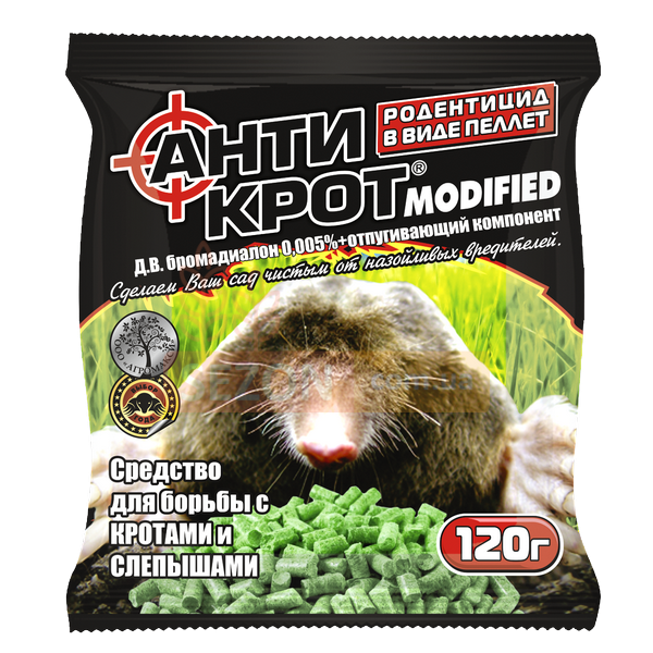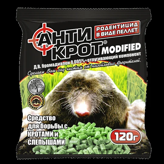 Гранулированная приманка, предназначена для борьбы с кротами, слепцами, а так же для отпугивания вредителей от сельскохозяйственных строений.