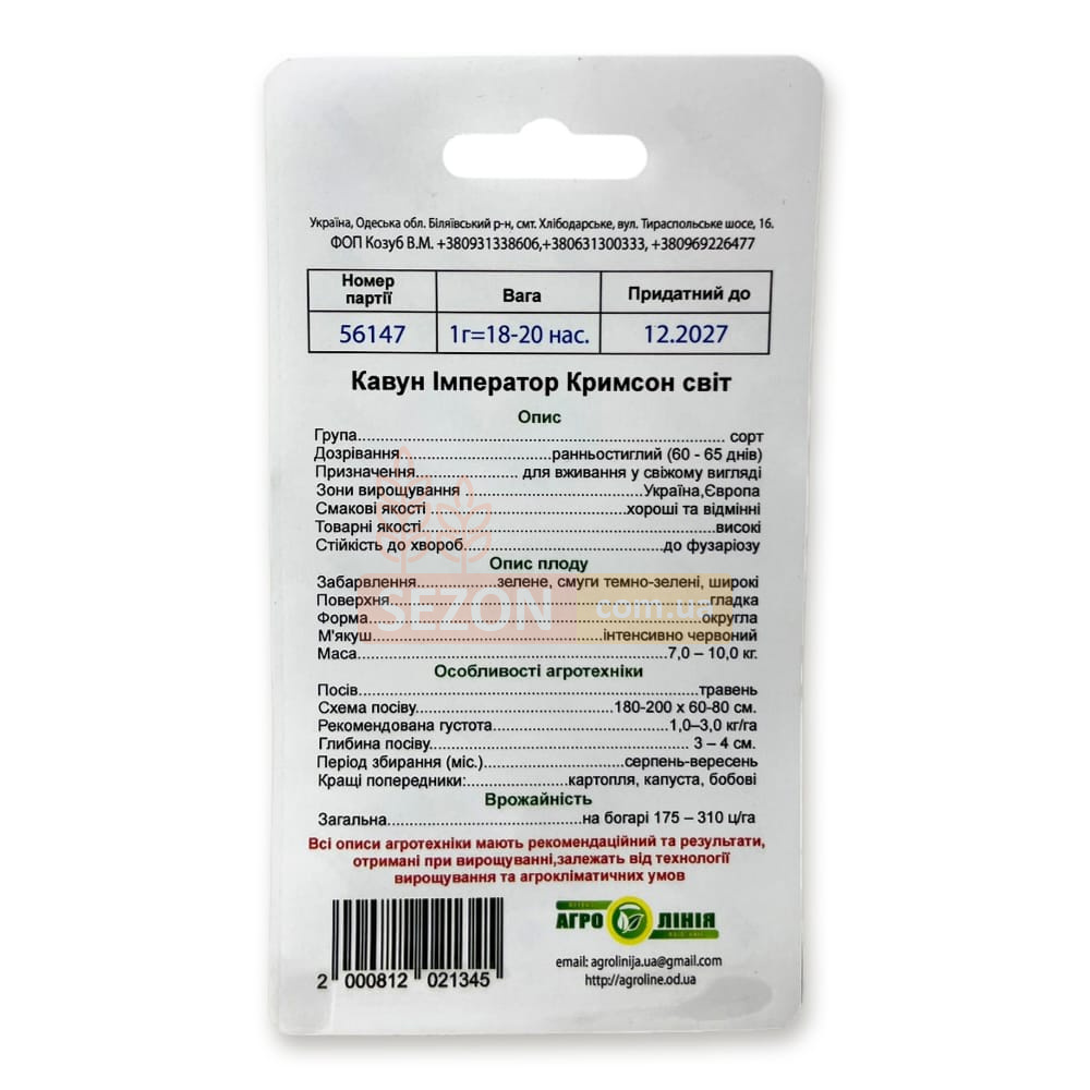 Кавун Император Кримсон Свит – это высококачественный раннеспелый гибрид, предназначенный для свежего потребления. Благодаря отличным товарным качествам и высокой устойчивости к болезням, этот сорт подходит как для коммерческого выращивания, так и для личного использования.