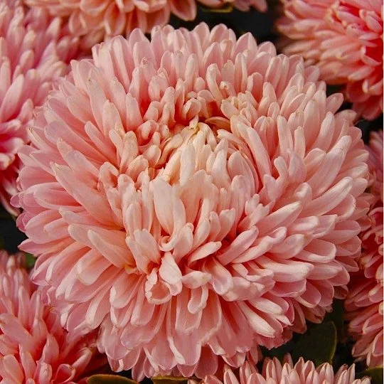 Астра китайская Балун (Callistephus chinensis Balloon). Настоящий воздушный шар. Серия превосходит все астры по степени махровости. Соцветия шаровидные, диаметром 12-15 см, характеризуются устойчивостью к проникновению дождя. Куст пирамидальной формы, высотой 50-60 см. На одном растении формируется 6-8 цветоносов. На рассаду семена высевают в марте - апреле. Пикировку проводят в фазе 2-3 настоящих листочков по схеме 5x5. В открытый грунт растения высаживают в середине мая. При безрассадном способе семена высевают на постоянное место ранней весной или под зиму. Неприхотливая культура, хорошо реагирует на подкормки. Используется для среза и оформления клумб. До 2 недель цветы сохраняют декоративность в воде.