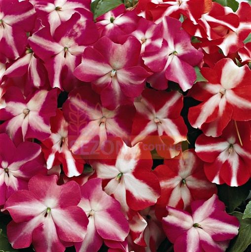 Бальзамин Уоллера Баланс белый F1 (Impatiens walleriana Balance F1). Куст с красивыми яркими цветами является карликовым гибридом и имеет высоту 10-20 см. Окрас цветов очень необычный - разные оттенки розового с белыми полосами на лепестках. Растение тепло- и влаголюбивое. Цветёт с июня до заморозков, а в комнатных условиях целый год при температуре не ниже 16 °С. Всходы появляются через 14-20 дней после посева. На открытый грунт растения высаживают в мае. Чаще всего Бальзамин Уоллера Баланс выращивают дома или используют для ландшафтного дизайна.