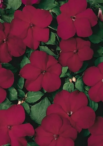 Бальзамин Уоллера Баланс F1 (Impatiens walleriana Balance F1). Куст с красивыми яркими цветами окраса бургунди является карликовым гибридом и имеет высоту 10-20 см. Растение тепло- и влаголюбивое. Цветёт с июня до заморозков, а в комнатных условиях целый год при температуре не ниже 16 °С. Всходы появляются через 14-20 дней после посева. На открытый грунт растения высаживают в мае. Чаще всего Бальзамин Уоллера Баланс выращивают дома или используют для ландшафтного дизайна.