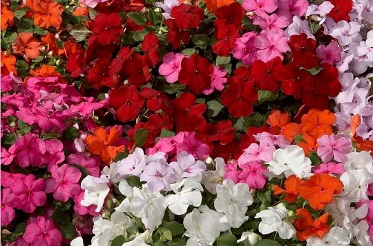 Бальзамин Уоллера Баланс F1 (Impatiens walleriana Balance F1). Куст с красивыми яркими разноцветными цветами является карликовым гибридом и имеет высоту 10-20 см. Растение тепло- и влаголюбивое. Цветёт с июня до заморозков, а в комнатных условиях целый год при температуре не ниже 16 °С. Всходы появляются через 14-20 дней после посева. На открытый грунт растения высаживают в мае. Чаще всего Бальзамин Уоллера Баланс выращивают дома или используют для ландшафтного дизайна.