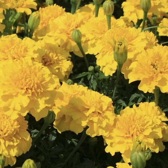 Бархатцы отклоненные Малыш (Tagetes patula папа). Карликовый сорт высотой 15-20 см. Куст компактный, с махровыми цветами. Цветение обильное и длительное с июня по октябрь. Быстрорастущее, свето-, теплолюбивое, неприхотливое к почве и влаге растение. Для раннего цветения семена высевают на рассаду в начале апреля. Всходы появляются через 5-6 дней, пикировку проводят в фазе 2-3 настоящих листочков. На постоянное место высаживают, когда минует угроза заморозков. Посев в открытый грунт проводят в мае на глубину 1,5-2 см. Рекомендуется для клумб, рабаток, ваз и балконов.