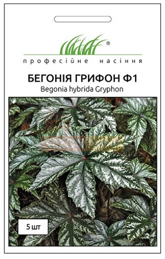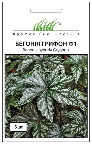 Бегония крупнолистовая Грифон F1 (Begonia semperflorens Gryphon F1) - многолетнее травянистое растение, формирующее большие декоративные листья эффектной окраски. Растение используется как комнатное растение, а также для оформления сада. Высота растения: 35-40 см.