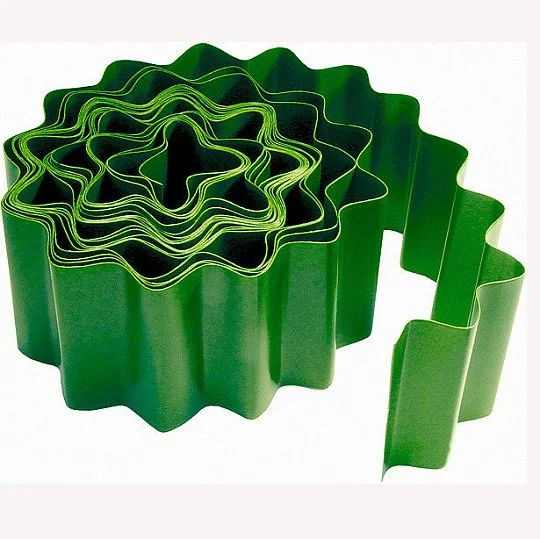 Газонный бордюр изготовлен из водонепроницаемого, эластичного материала. Не допускает перерастания травы, хорошо отделяет газон от овощной или цветочной грядки. Цвет зеленый. При установке бордюра проследите, чтобы его верхняя часть не была выше поверхности земли.