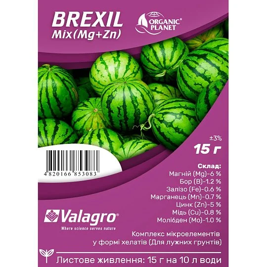 Brexil Mix, 15 г – это микроудобрение, основанный на мезо и микроэлементах, представленных в хелатированном виде. Оно применяется при недостатке магния и цинка (особенно важно для южной Украины – с почвами, содержащими песок и глину). Продукт быстро воздействует на физиологические процессы в растении, существенно повышая товарные качества продукции (пшеница, ячмень, овес, рожь). Оно отвечает потребностям культур, которые растут на органике-богатых, рыхлых и кислых почвах.
