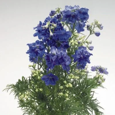 Дельфиниум крупноцветковый Саммер (Delphinium grandiflorum Summer). Ранняя генетически компактная серия с большим количеством ярких цветов. Отличается длительным периодом цветения (июнь - сентябрь). Куст сильно разветвленный, высотой 30-35 см. Предпочитает защищенные от ветра, солнечные участки с плодородными и хорошо дренированные почвами, без застоя воды. Засухоустойчивая, морозостойкая, нетребовательна в уходе культура. Срок посева: апрель - май или август - сентябрь. При правильном уходе растения растут на одном месте 5 -7 лет. Идеально подходит для оформления клумб, бордюров и вазонов.