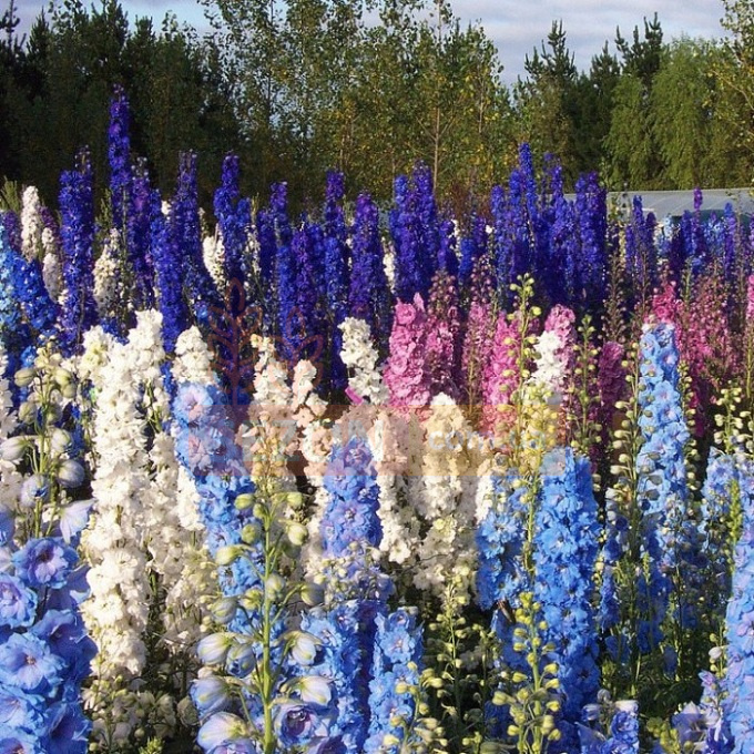 Описание Дельфиниум махровый Магический фонтан F1 250 семян смесь, Benary flowers