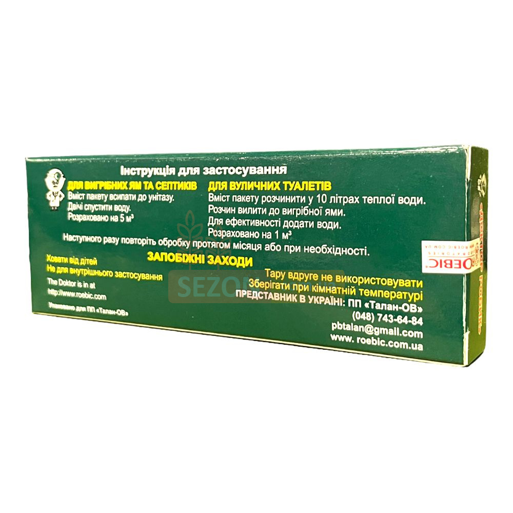 Для уличных туалетов и компостных ям — растворить содержимое пакета в ведре с водой и вылить в выгребную яму.