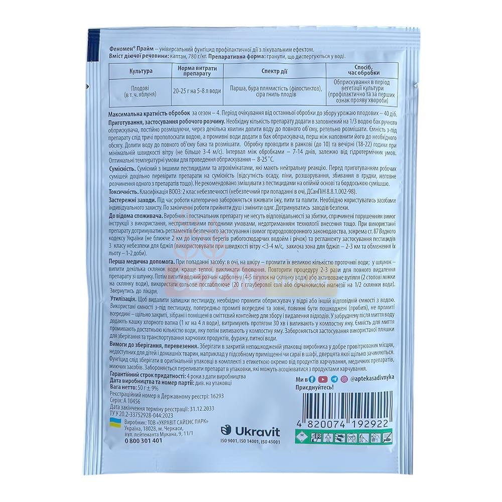 Характеристики Феномен прайм 50 г фунгицид, Укравит