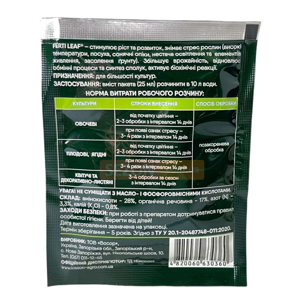 Ferti Leaf® – инновационный регулятор роста, который ускоряет развитие вегетативной системы растений, улучшает метаболизм и усиливает фотосинтез. Благодаря уникальному составу, препарат помогает культурам адаптироваться к стрессовым условиям – заморозкам, засухе, химическим повреждениям. Использование Ferti Leaf® способствует увеличению урожайности, укреплению растений и повышению их устойчивости к неблагоприятным факторам. Подходит для овощных, плодовых, ягодных и декоративных культур.
