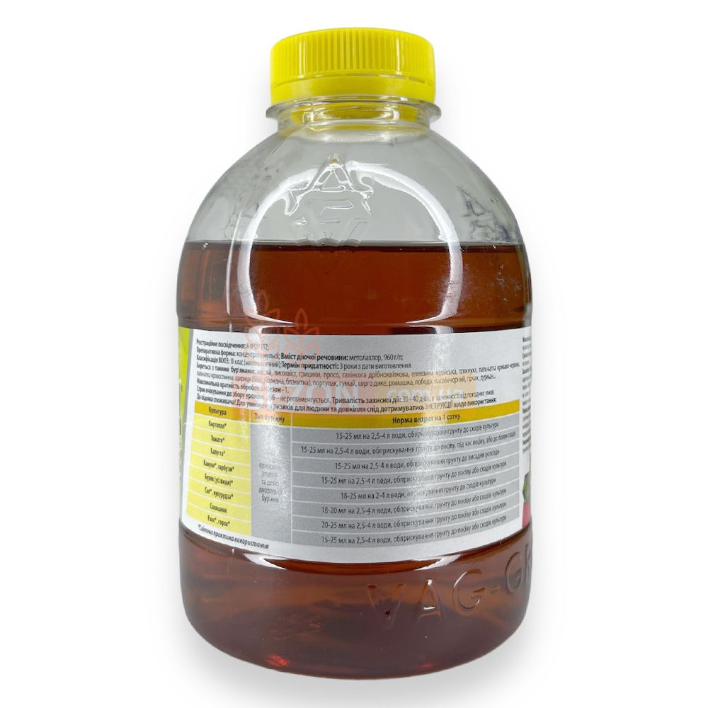 Грунтовый гербицид, применяется для борьбы с однолетними злаковыми и некоторыми однодольными сорняками на овощных, технических и зерновых культурах. Данный препарат может применяться после высева культур, но до их всходов. Гербицид проникает в сорные растения через листья и полностью уничтожает их через 7-14 дней после обработки.