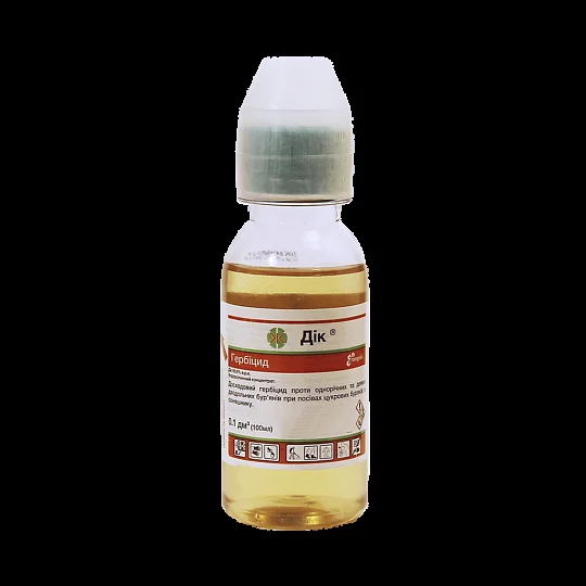 Дик 46,6% в.р.к. - системный гербицид для пислясходового контроля двудольных сорняков. Селективный по пшеницы, ячменя и ржи, от 2 листьев до флагового листа. Кукурузы - фаза 3 - 5 листьев.