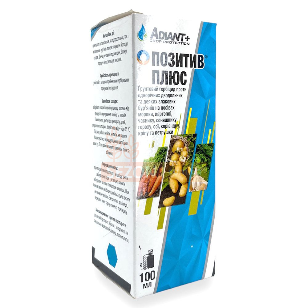 "Позитив плюс" — эффективный гербицид на посевах многих культур в сельскохозяйственном производстве особенно против двудольных сорняков. Продолжительность защитного действия пестицида длится от 8 д 10 недель, на это влияют погодные условия, влажность почвенного покрова, распределение рабочей жидкости по почве и периода появления первых всходов.