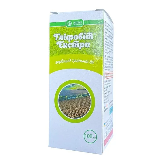 Глифовит Экстра — системный гербицид после всходов, предназначенный для эффективного уничтожения однолетних и многолетних сорняков, в том числе карантинных видов, а также древесно-кустарниковой растительности. Препарат активно проникает в растение через листья и перемещается к корневой системе, полностью уничтожая его изнутри. Используется весной и осенью на сельскохозяйственных полях и несельскохозяйственных территориях.