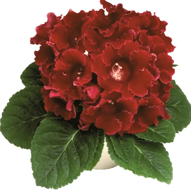 Глоксиния Crispa Meteor с винно-красными, по краю волнистыми и осветленными лепестками, внутренняя сторона которых усеяна мелким крапом. Такое сочетание окраса создает эффект атласного бархата, что придает цветку изысканности, чувственности и грации. Превосходное украшение подоконников офисного помещения или домашнего жилья.
