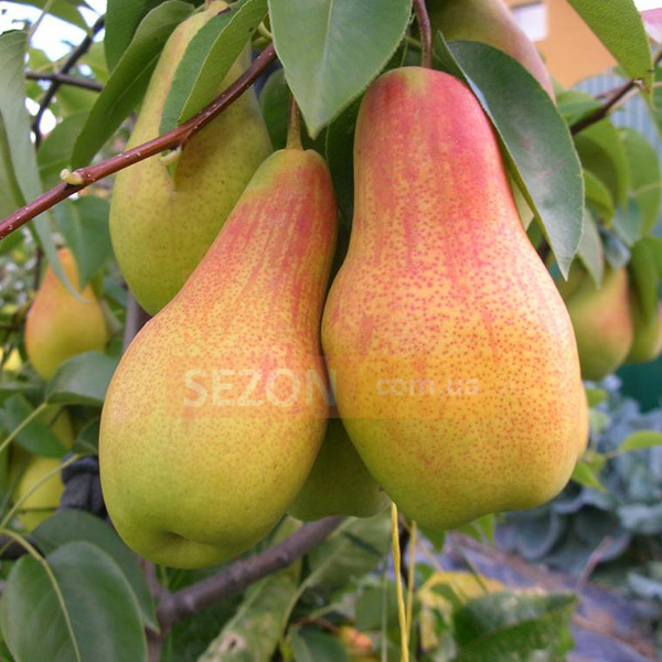 Груша Талгарская Красавица радует стабильно высокими показателями урожайности и устойчивым иммунитетом к грибковым заболеваниям, и при этом совсем не прихотлива в уходе. Морозостойкость высокая, жизнеспособность и урожайность деревьев сохраняется даже в неблагоприятных климатических и почвенных условиях. Фрукты созревают во второй половине сентября, крупные, весом до 180 г, на ветках держатся крепко. Форма плода – удлиненно-грушевидная, цвет – салатово-желтый с румяным бочком. Мякоть белая, иногда кремовая, плотная, но не зернистая, сладкая. Собранный урожай может храниться до января.