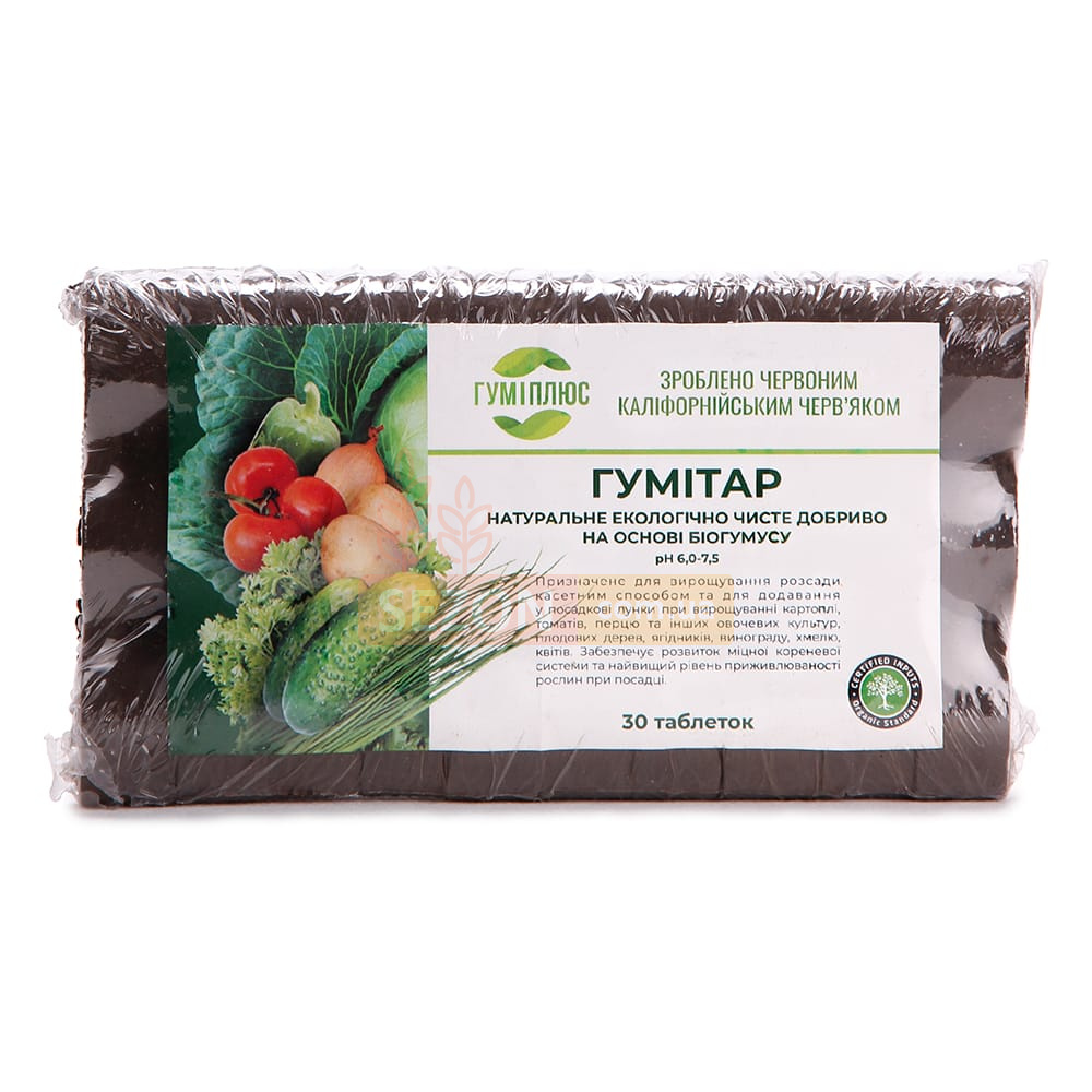 Гумитар – это натуральное, экологически чистое удобрение в форме торфобиогумусных таблеток на основе биогумуса (вермикомпоста). Предназначено для выращивания рассады, питания корневой системы и улучшения приживаемости растений. Продукт не содержит возбудителей заболеваний и семян сорняков, полностью безопасен для человека и окружающей среды.