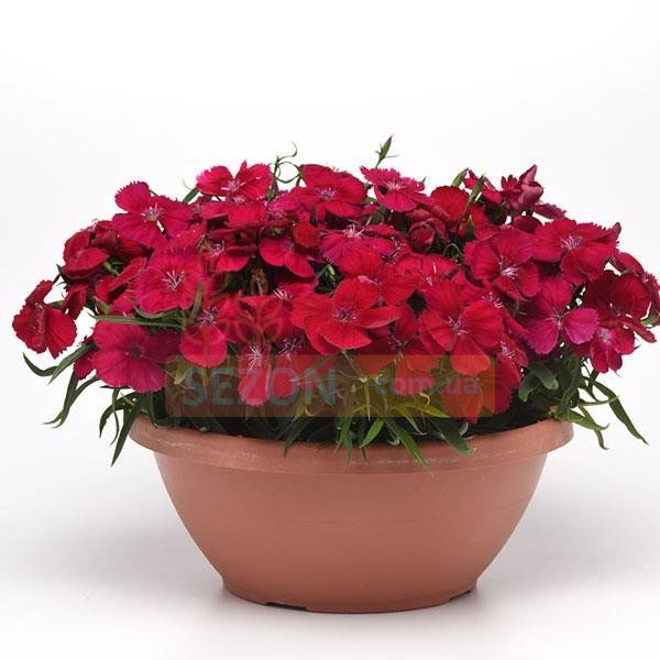 Описание Гвоздика китайская Корона F1 вишнево-красная 100 семян, Pan American flowers