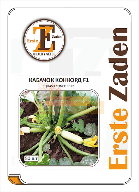 Куст компактный, прямостоячий, среднерослый. Когда кабачки достигают 15-20 см в длину и 6-7 см в диаметре, их нужно срывать. Кожица очень тонкая, бледно-салатовая, с легким восковым налетом, покрытая светлыми вкраплениями. Мякоть кремово-белая, очень нежная. Кабачки идеальны для консервации и переработки, особенно вкусны поджаренными. Отлично хранится без потери товарного вида вкусовых свойств. Купить семена кабачков «Конкорд F1» можно на сайте Sezon.com.ua.
