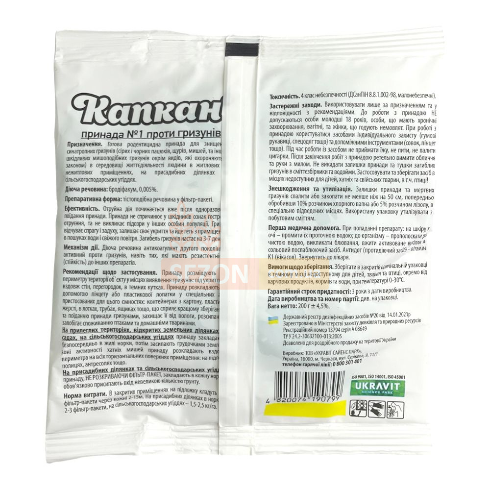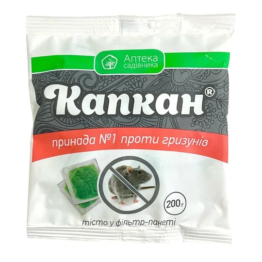 представляет собой готовое к использованию средство в упаковке-фильтре. Оно разработано для устранения грызунов в жилых, промышленных и других объектах, а также на придомовых территориях и сельских землях. Активный компонент этого теста, бродифакум, воздействует на механизм образования витамина K1 в организме грызуна. Через день после употребления продукта у животного ухудшается свертываемость крови, что может привести к его смерти из-за внутренних кровотечений. Дополнительное свойство этого препарата – мумификация, исключающая неприятный запах от погибших грызунов.