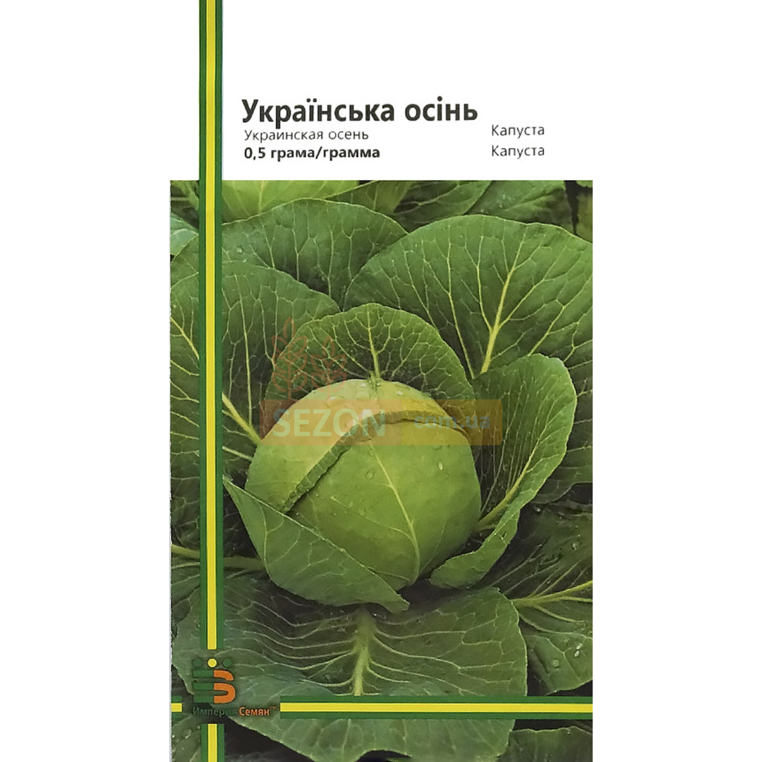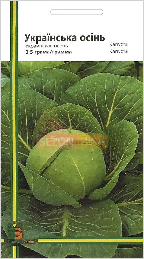 Украинская осень – высокоурожайный сорт позднего срока созревания. Устойчив к основным болезням, не растрескивается. Выращивают в открытом грунте или тепличных укрытиях. Посев семенного материала на рассаду осуществляют в мае месяце на глубину 1,5-2 см. Пересадка растений выполняют в возрасте 45-50 дней. Схема посадки 70х70 см. Нуждается в регулярном поливе, подкормке минеральными удобрениями. Вегетационный период составляет 150-165 дней. Кочанчик весьма плотный. Форма округлая, слегка приплюснутая. Цвет светло-зеленый. В поперечном разрезе середина белая. Масса головки достигает 3-4,5 кг. Вкус превосходный. Презентабельный внешний вид. Употребляют в свежем виде, используют для квашения. Лежкость отличная, хранится достаточно долго.