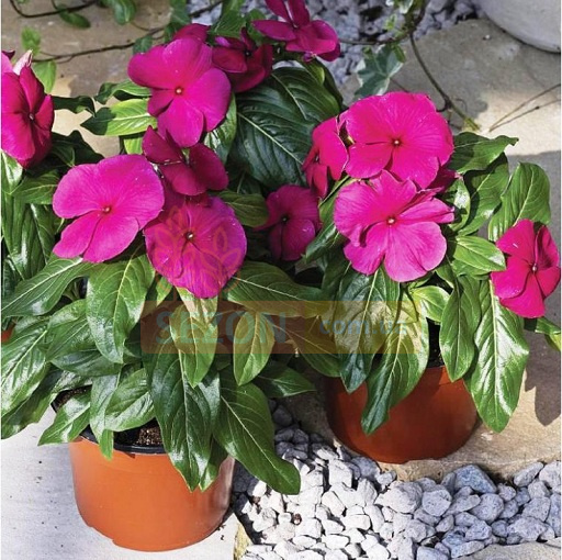 Катарантус Титан F1 (VincaTitan F1) - однолетнее растение, характеризующееся ранним сроком цветения и большими цветами. Растение высокоустойчиво к засухе, неприхотливо в выращивании. Цветет обильно, до самых заморозков. Рекомендуется для оформления клумб или выращивания в контейнерах. Зимой катарантус можно занести в дом и выращивать как комнатное растение.