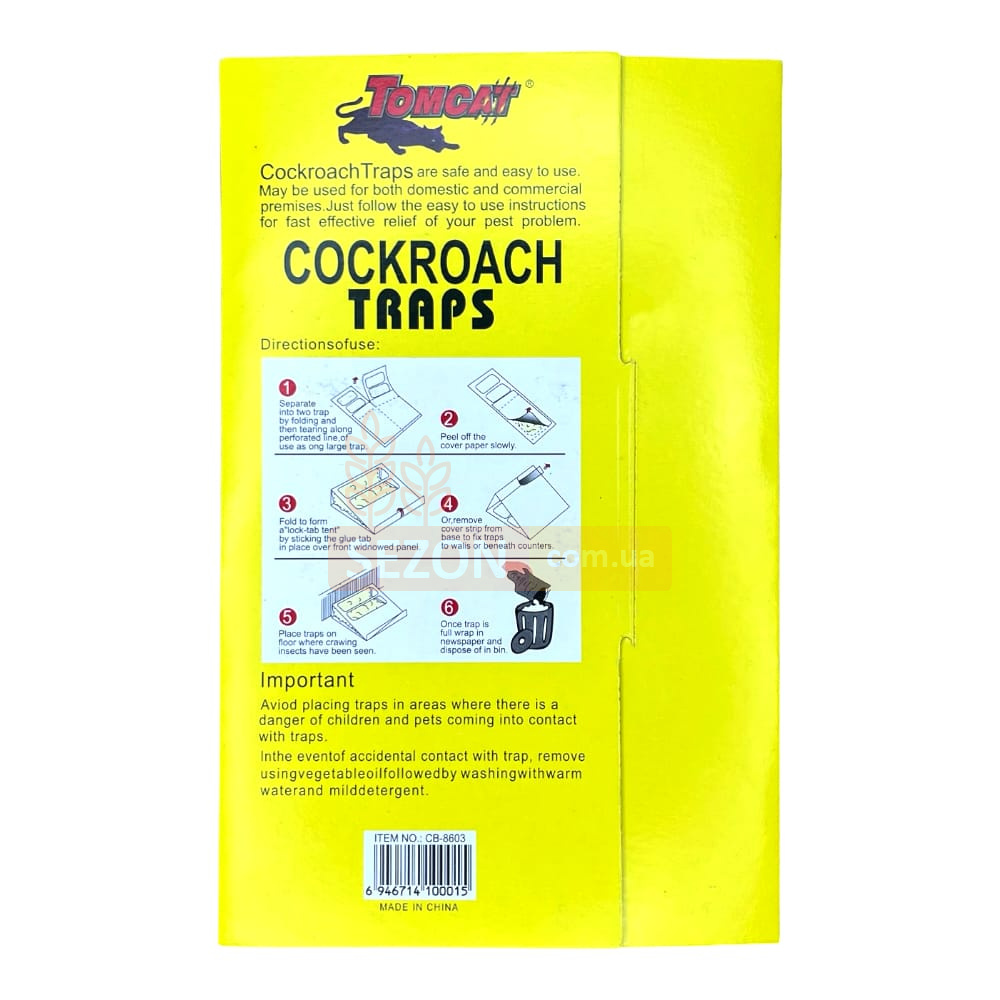 Липкая ловушка от тараканов Tomcat cocroach traps traps - это эффективное средство для борьбы с тараканами. Она представляет собой картонную пластину с нанесенной на нее липкой массой. Таракан, заползая на ловушку, прилипает к ней и не может освободиться.