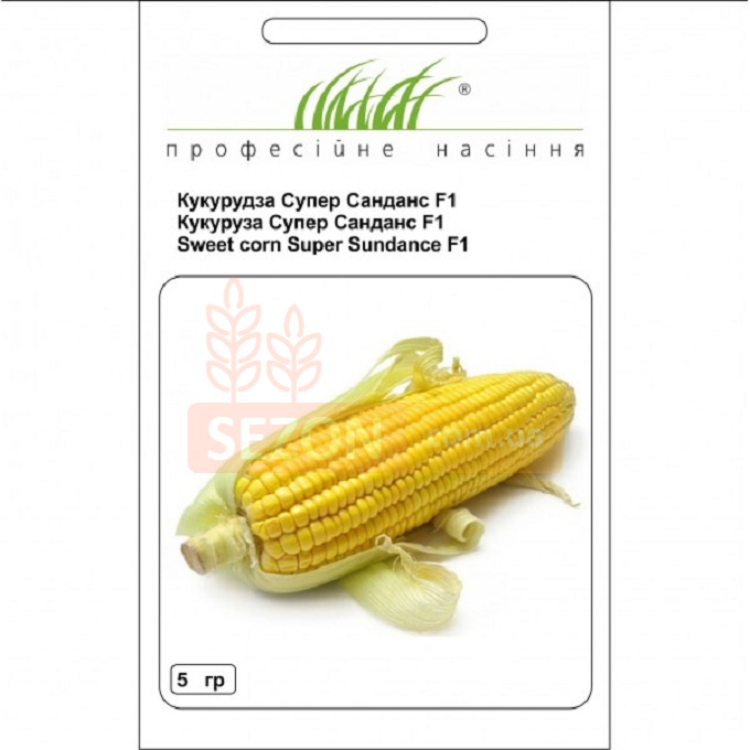 Санданс F1 - ранний гибрид сахарной кукурузы. Початки около 20 см в длину, очень сладкие, нежные. Через 70 дней можно собирать урожай в фазе молочной спелости. Подходит для употребления в виде вареных початков и для консервирования. Гибрид устойчив к карликовой мозаике.