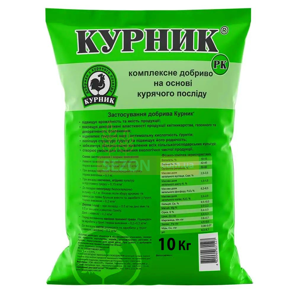 Курник PK® — это высокоэффективное органическое удобрение, разработанное для подкормки овощных, ягодных, плодовых и декоративных культур. Оно подходит для любых типов почв и климатических зон. В отличие от свежего помета, удобрение безопасно для корневой системы благодаря фиксации азота в органической форме. Производственный процесс включает полное обеззараживание от вредных бактерий, семян сорняков и яиц гельминтов.