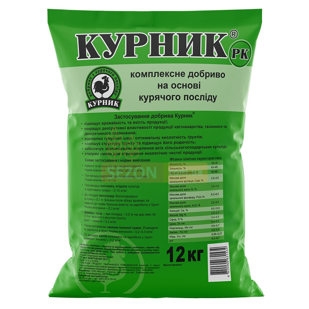 Курник PK® — это высокоэффективное органическое удобрение, созданное на основе обеззараженного куриного помета. Содержит полный комплекс макро- и микроэлементов, которые постепенно высвобождаются в течение 2-3 лет, поддерживая стабильный рост растений. Применяется на любых типах почв и в различных климатических зонах, эффективно увеличивает урожайность и сокращает сроки созревания.