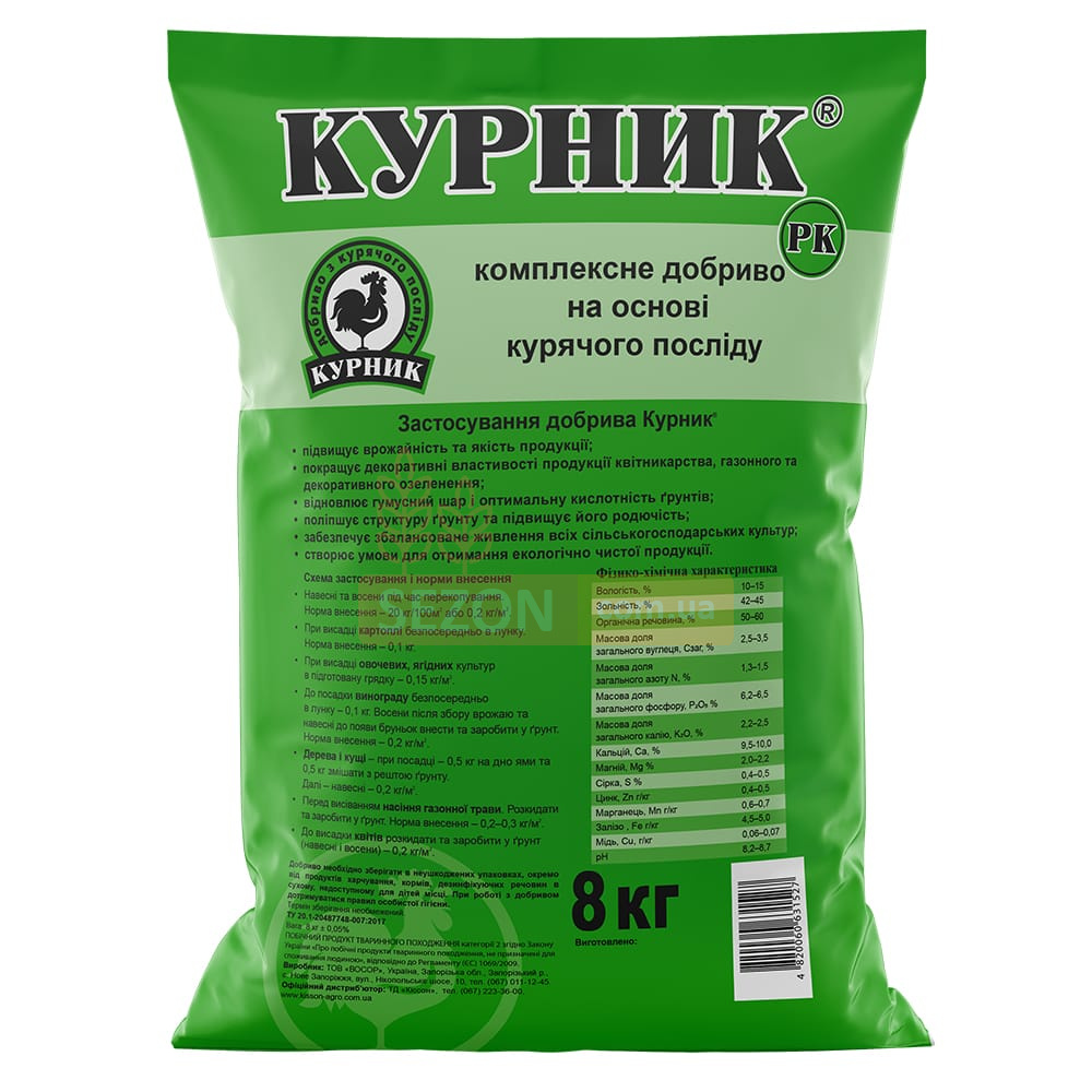 Курник PK® — это высокоэффективное органическое удобрение, созданное на основе обеззараженного куриного помета. Содержит полный комплекс макро- и микроэлементов, которые постепенно высвобождаются в течение 2-3 лет, поддерживая стабильный рост растений. Применяется на любых типах почв и в различных климатических зонах, эффективно увеличивает урожайность и сокращает сроки созревания.