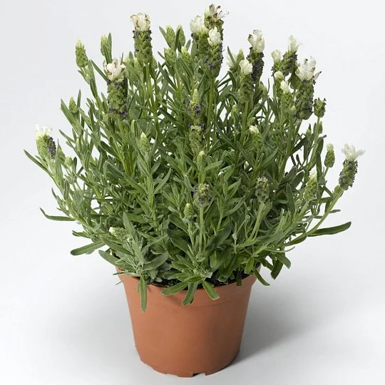 Лаванда французская Кастилиано (Lavandula stoechas Castilliano 2.0). Сильный и приятный аромат, оригинальная окраска, большое количество соцветий на коротких цветоносах, превосходное ветвления, быстрый рост, длительный период цветения до поздней осени. Высота куста 25-35 см. Время выращивания от высадки в горшки 10-14 недель. Диаметр контейнера 12-15 см. Используется для озеленения и выращивания в горшках.
