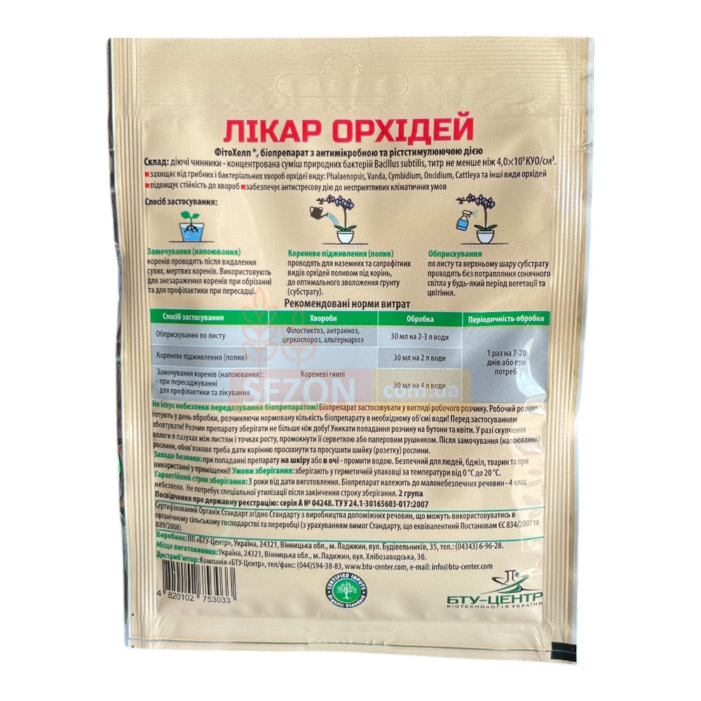 Лекарь Орхидей — это натуральный биофунгицид, разработанный специально для защиты декоративных орхидей от грибных и бактериальных заболеваний. Он эффективен против фузариоза, филлостиктоза, антракноза, корневых гнилей и других распространённых инфекций. Препарат подходит для всех популярных видов: Phalaenopsis, Vanda, Cymbidium, Oncidium, Cattleya и других.