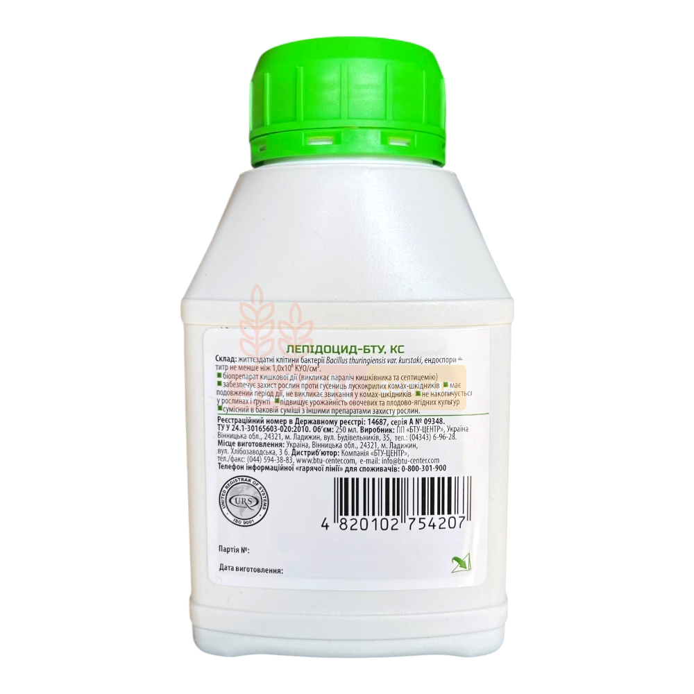 Лепидоцид — это биологическое средство на основе культуры бактерии Bacillus thuringiensis var. kurstaki. Применяется для защиты овощных, плодово-ягодных и декоративных культур от гусениц чешуекрылых насекомых. Подходит для использования в органическом земледелии.