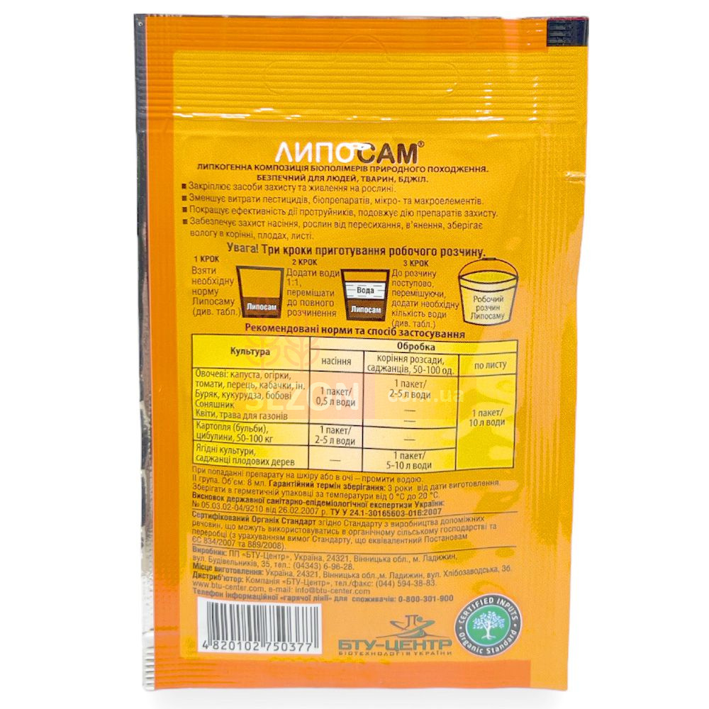 Липосам – это натуральный биополимер, который не повреждает листья, сохраняет восковой слой и действует как мягкий антистрессант.
