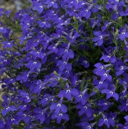 Лобелия Ривьера (Lobelia erinus Riviera). Ультраранняя, обильно цветущая, очень эффектная серия (зацветает на 15 дней раньше по сравнению со стандартными сортами). Формирует компактный куст шаровидной формы, высотой около 13 см. Листочки маленькие, ланцетные, плотные, размещенные в очередном порядке. Цветы двугубые, на коротких цветоножках, по одному в пазухе листьев. Сохраняет декоративный вид до наступления осенних заморозков. Светло и теплолюбивая культура. Семена высевают в конце февраля - начале марта, поверхностно. Сверху посевы накрывают пленкой или стеклом. При температуре 18-20 ° С всходы появляются через 1-2 недели. После появления первых настоящих листочков сеянцы пикируют. В открытый грунт растения высаживают после того, как минует угроза заморозков. Для обильного цветения необходимо своевременно обрезать отцветшие побеги. Незаменимое растение для балконных ящиков, комбинированных подвесных корзин, для использования в качестве почвопокровного растения.
