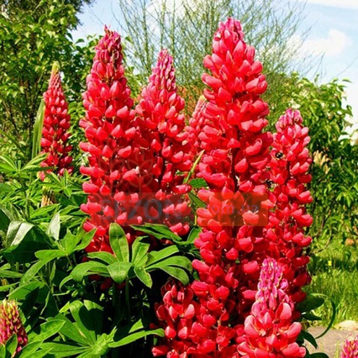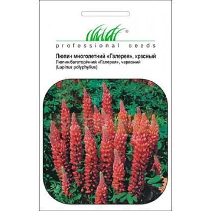 Люпин Фестиваль - многолетнее, зимостойкое, неприхотливое растение. Высота 50 см, формирует длинное соцветие в виде колоска, с мелкими красными цветочками. Цветение наступает на второй год после посева. Люпин предпочетает солнечные места.