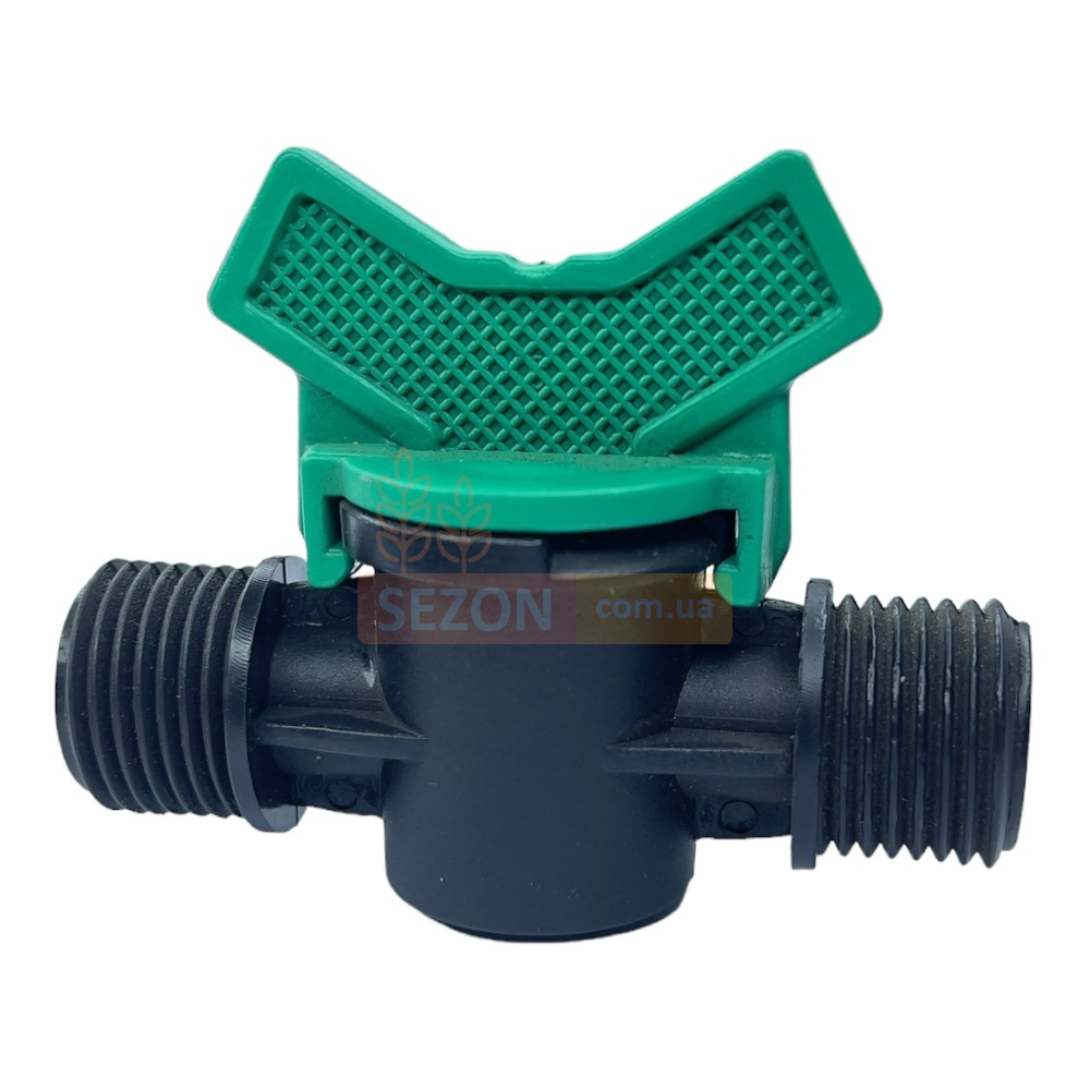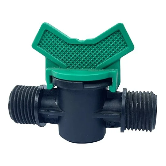 Миникран проходной резьба наружная 1/2 - резьба наружная 1/2: Данный тип миникрана используется для соединения трубок с резьбовым соединением. Он обеспечивает надежную герметизацию и удобство монтажа, позволяя интегрировать различные компоненты системы капельного полива.