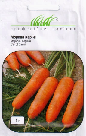 Карини - ранний сорт моркови. Период созревания - 100 дней. Корнеплоды гладкие, конической формы, оранжевого цвета, не склонные к растрескиванию. Этот сорт отлично переносит механизированную уборку урожая.