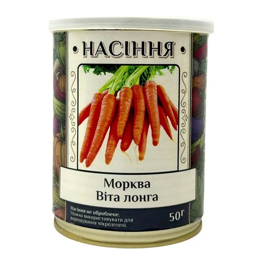 Морковь «Вита Лонга» — среднеспелый сорт, который широко используется для получения качественных корнеплодов с хорошей лежкостью. Продукция представлена в удобной упаковке — банка, что упрощает хранение семян и их использование в течение сезона.