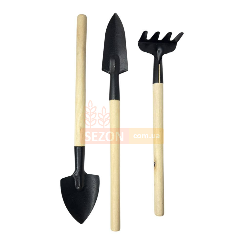 Лопатка используется для пересадки и работы с грунтом. Совок удобен для засыпки почвы и формирования посадочных лунок. Грабли подходят для рыхления верхнего слоя почвы и равномерного распределения субстрата.