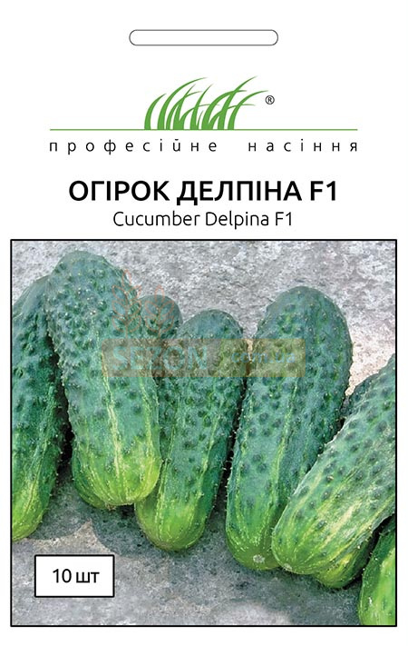 Ранний гибрид огурца, предназначенный для употребления в свежем виде и для засолки. Плоды цилиндрические, однородные и ровные, светло-зеленого цвета, без горечи. Гибрид Делпина отлично переносит высокие температуры. Тип: самоопыляемый. Количество семян в 1г: 35-40 шт. Срок вегетации: 40-45 дней. Размер плода: 6-12 см